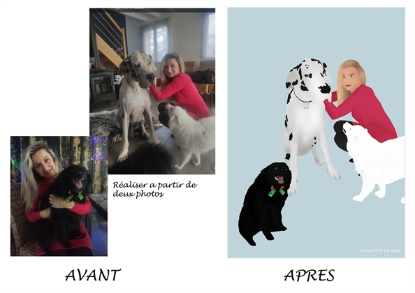 Une fois le passage de votre commande finalisée, n'oubliez pas de nous transmettre la ou les photos à l'adresse e-mail suivante : lapalettedejuju@gmail.com et n'hésitez pas à nos transmettre vos souhaits pour la réalisation de l'illustration (comme la couleur souhaiter pour le fond de l'illustration) ainsi que les détails peu visibles sur la ou les photos (comme la couleur des yeux ...).
